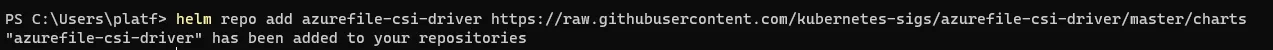 helm repo add azurefile-csi-driver https://raw.githubusercontent.com/kubernetes-sigs/azurefile-csi-driver/master/charts